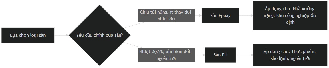 Chú thích hình ảnh: Biểu đồ luồng lựa chọn Epoxy vs PU dựa trên điều kiện hoạt động.