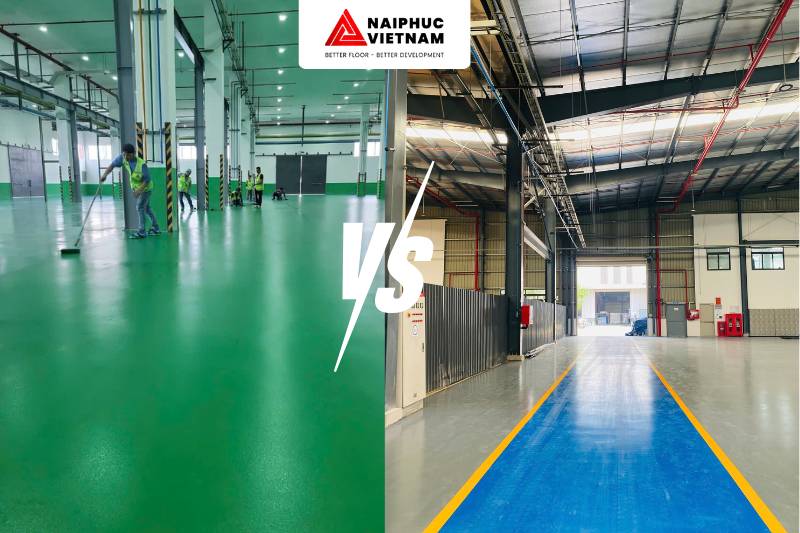 Chú thích hình ảnh: sàn Epoxy và sàn PU