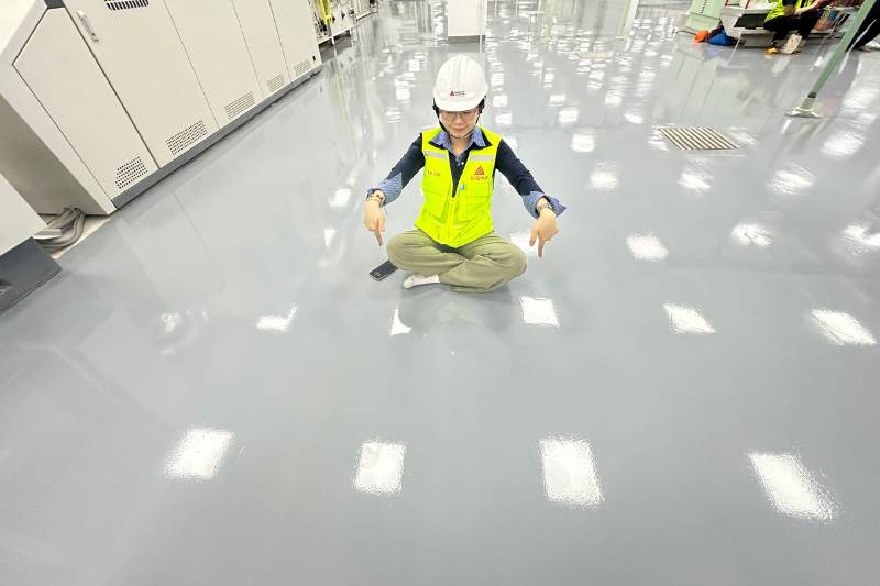 Ứng dụng Nhà xưởng sản xuất, tầng hầm, bệnh viện, trường học (nơi tải trọng nặng, yêu cầu sạch sẽ). Đặc biệt ưa chuộng cho nhà máy ô tô, điện tử, dược phẩm. Khu chế biến thực phẩm, nhà máy điện, phòng sạch nhiệt độ thay đổi, bãi đậu xe ngoài trời, sân thang, phòng sơn – nơi cần chống sốc nhiệt, chống UV và kháng acid thực phẩm.